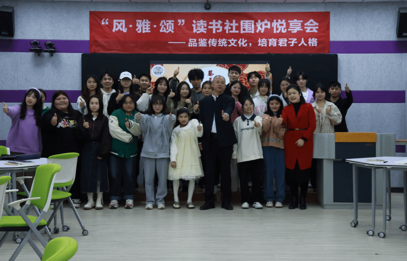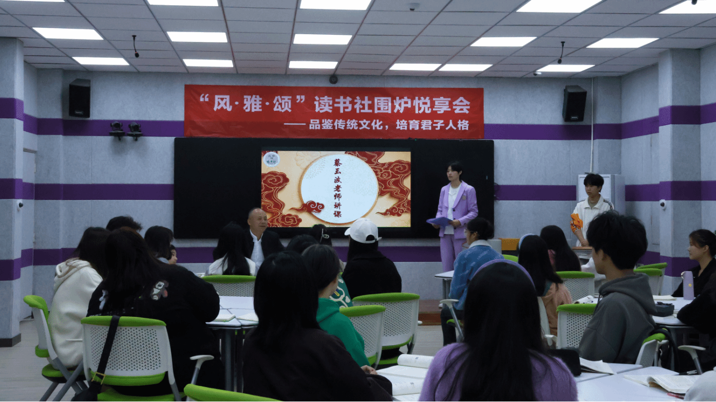 3月28日下午,学校“风·雅·颂”读书社在教学楼A304教室开展以“品鉴传统文化,培育君子人格”为主题的围炉悦享读书会,学校党委书记、读书社指导老师蔡玉波为同学们作精彩讲授。